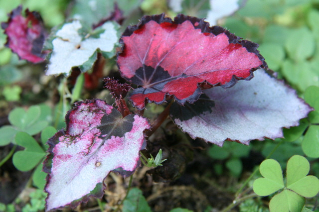 기능성정보 : 베고니아의 관상부위는 세 가지(꽃, 잎, 반관목성)로 구분하는데, 렉스베고니아는 잎 무늬를 관상하는 식물이다. 잎이 두텁고 얼룩무늬도 있으며 달팽이처럼 말린 것도 있고 종류가 매우 다양하다. 줄기의 온몸에 거친 털이 나 있다. 잎은 대형 달걀 모양으로 길이는 30cm, 폭은 20cm 정도이다. 잎 면에는 품종에 따라 보라색, 빨간색, 은백색, 구릿빛 등 다양한 무늬가 있다. 렉스베고니아는 잎꽂이로 번식이 쉽다. 벤치 아래, 시원하고 습한 그늘에서 가장 이상적인 성장을 한다.