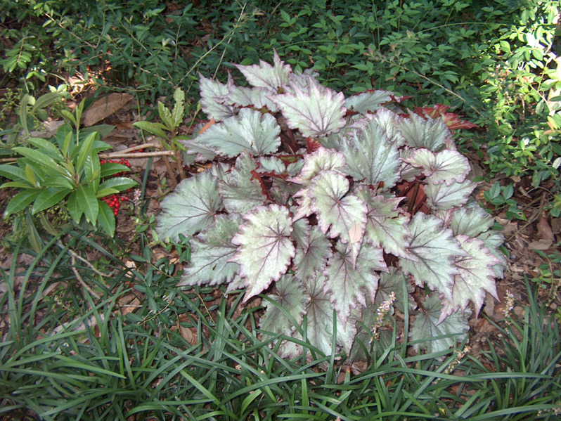 기능성정보 : 베고니아의 관상부위는 세 가지(꽃, 잎, 반관목성)로 구분하는데, 렉스베고니아는 잎 무늬를 관상하는 식물이다. 잎이 두텁고 얼룩무늬도 있으며 달팽이처럼 말린 것도 있고 종류가 매우 다양하다. 줄기의 온몸에 거친 털이 나 있다. 잎은 대형 달걀 모양으로 길이는 30cm, 폭은 20cm 정도이다. 잎 면에는 품종에 따라 보라색, 빨간색, 은백색, 구릿빛 등 다양한 무늬가 있다. 렉스베고니아는 잎꽂이로 번식이 쉽다. 벤치 아래, 시원하고 습한 그늘에서 가장 이상적인 성장을 한다.